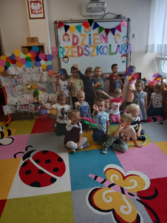 piątek, 19 września 2025 roku "Dnia przedszkolaka" 4-latki 2025 r. Uroczystości Dnia 19 września 2025 roku dzieci z grupy 4-letniej przeszły w kolorowym marszu ulicami miasta. Były na spacerze w parku i przy fontannie. Po powrocie do przedszkola bawiły się przy wesołej muzyce. Tak uczciły dzień przedszkolaka tego roku.
