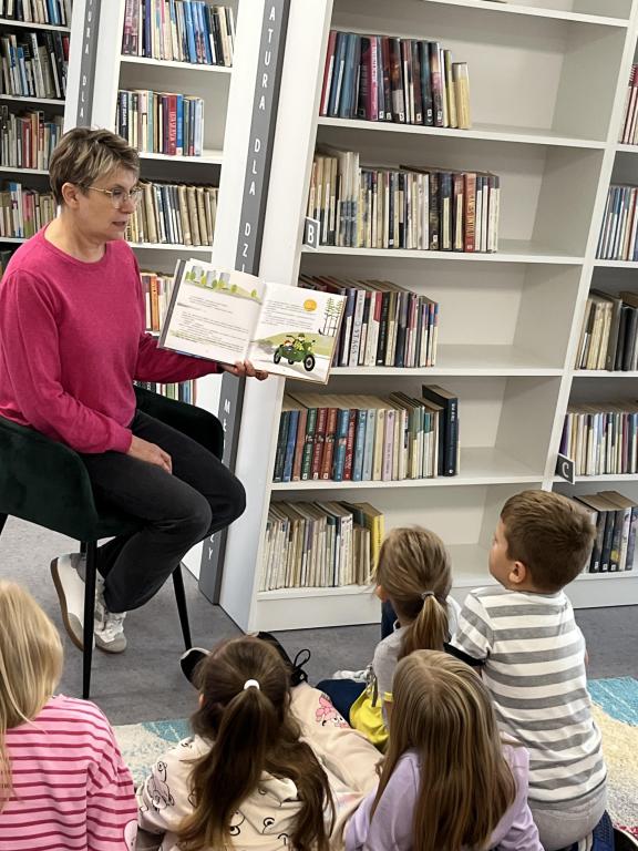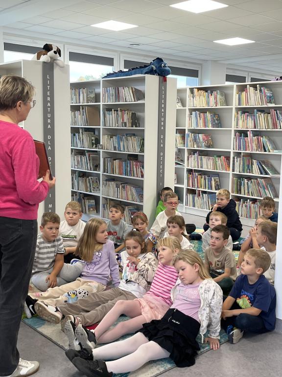 Grupa 6 latków udała się na spotkanie w bibliotece w ramach projektu DKK. Na spotkaniu Pani z biblioteki przeczytała dzieciom książkę Elizy Piotrowskiej "Ciocia Jadzia z Transylwanii" Głównym celem spotkania było zachęcenie do czytania oraz aktywizacja młodych czytelników. Po krótkiej rozmowie dzieci miały czas zapoznać się z nowymi książkami dla najmłodszych.