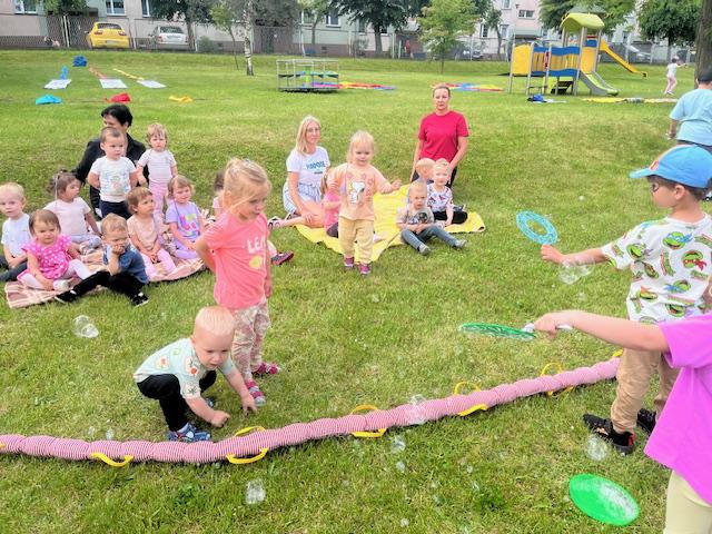 piątek, 30 maja 2025 roku Dzień Dziecka żłobek 2025 r. Żłobek Rozrywka Uroczystości Dzień Dziecka w żłobku to okazja do radosnej zabawy i wspólnego świętowania. Dzieci śpiewały, tańczyły przy muzyce, a także maiły zabawy ruchowe, plastyczne związane z tematyką Dnia Dziecka.