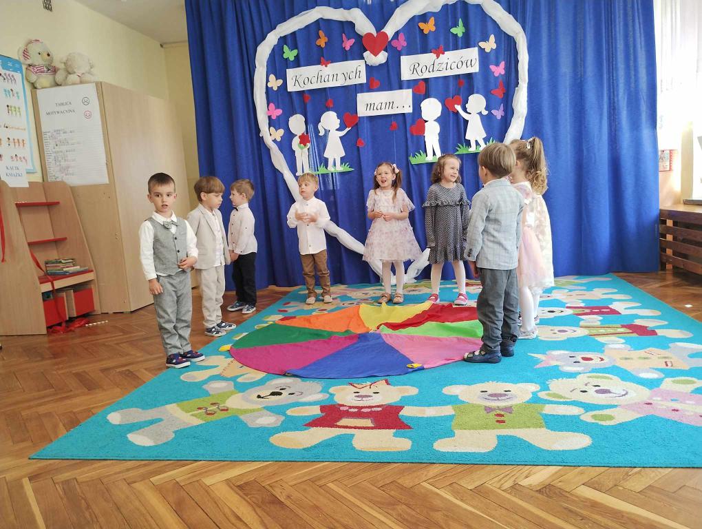 27 maja w naszym przedszkolu odbyło się wyjątkowe wydarzenie – Dzień Mamy i Taty w grupie 4-latków A. Dzieci z wielkim zaangażowaniem przygotowały występ artystyczny, recytowały wierszyki i śpiewały piosenki dla swoich ukochanych rodziców. Po części artystycznej wszyscy zasiedli do wspólnego poczęstunku, przygotowanego z myślą o miłym świętowaniu w rodzinnej atmosferze. To był wzruszający i pełen radości dzień!