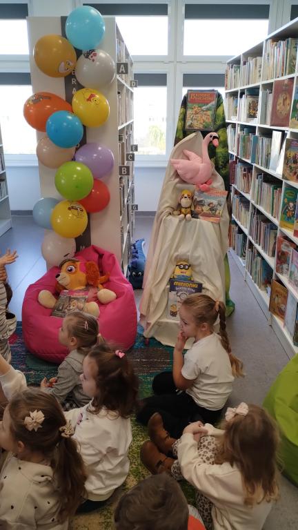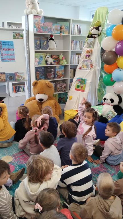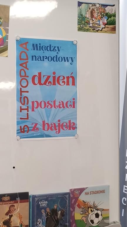 Z okazji Dnia Postaci z Bajek dzieci z dwóch grup pięcioletnich naszego przedszkola wybrały się na zajęcia dydaktyczne do Miejskiej Biblioteki Publicznej w Pajęcznie. Podczas spotkania przedszkolaki rozwiązywały zagadki o bajkowych bohaterach oraz wzięły udział w zabawach ruchowych i plastycznych.