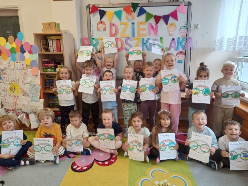 Dzieci z naszej grupy to zadowolone i szczęśliwe przedszkolaki, każdego dnia z radością uczestniczą w zajęciach i wspólnych zabawach. Z okazji Dnia Przedszkolaka przygotowały wyjątkową pracę artystyczną, wysłuchały wiersza „Wszyscy mnie lubią – to rzecz wspaniała”.