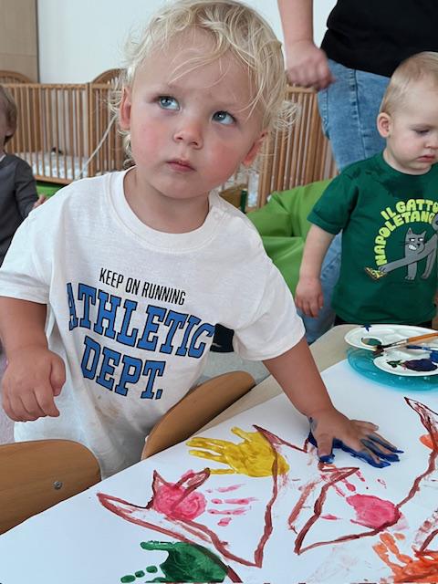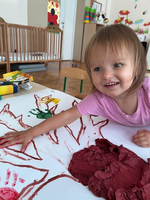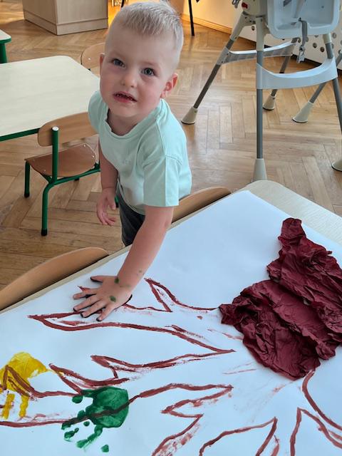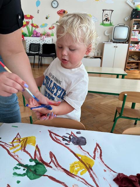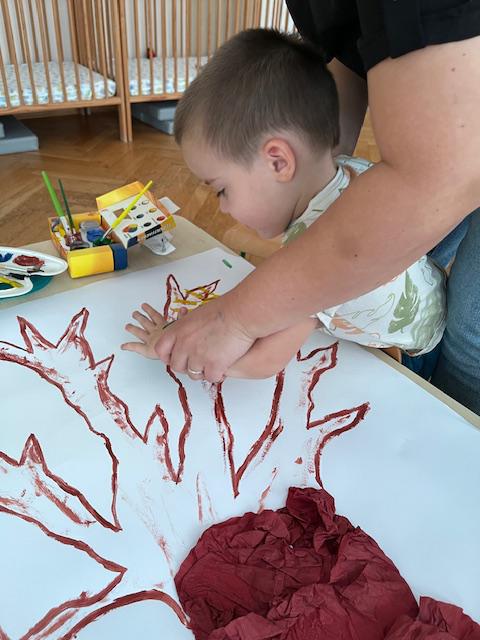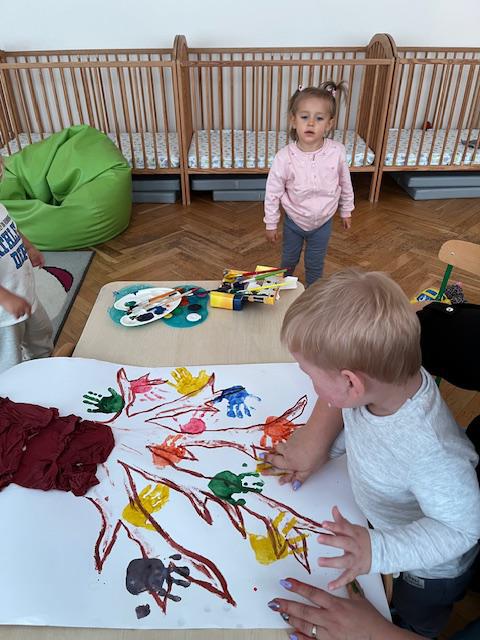 czwartek, 25 września 2025 roku Jesień w żłobku 2025 r. Edukacja Dzieci ze żłobka witają jesień ! Dzisiaj dzieci wspólną pracą plastyczną za pomocą farb i dłoni stworzyły jesienne drzewo.