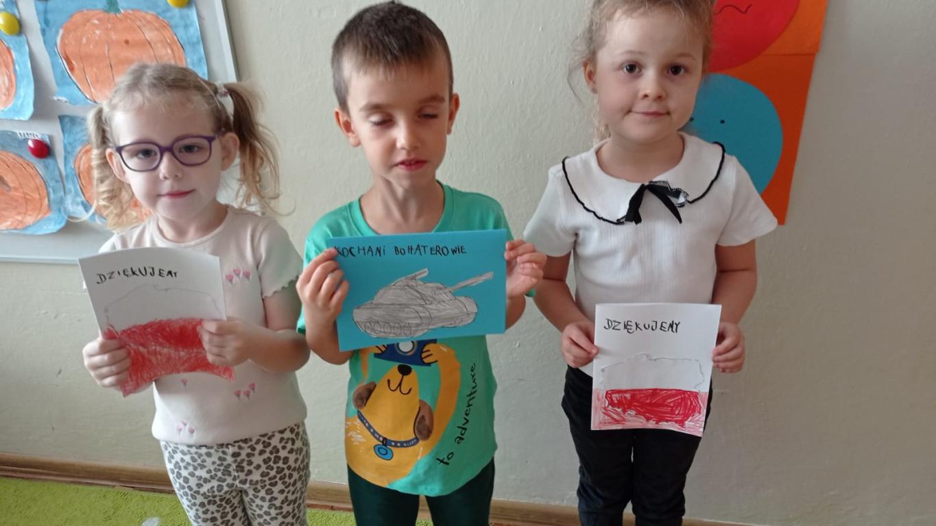 Dzieci z naszego przedszkola przygotowały piękne kartki i laurki z życzeniami oraz rysunkami, które zostaną przekazane żołnierzom jako symbol pamięci, otuchy i wdzięczności za ich trudną i odpowiedzialną służbę.
