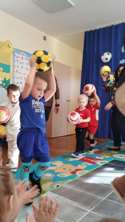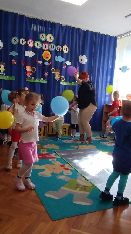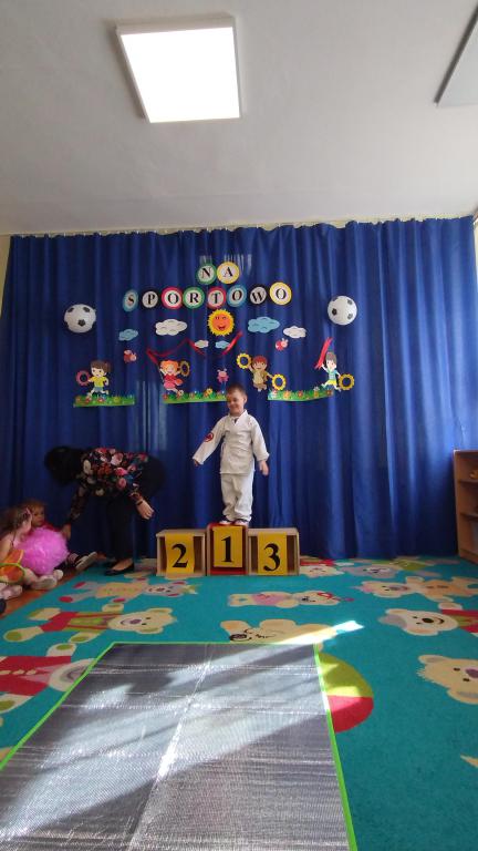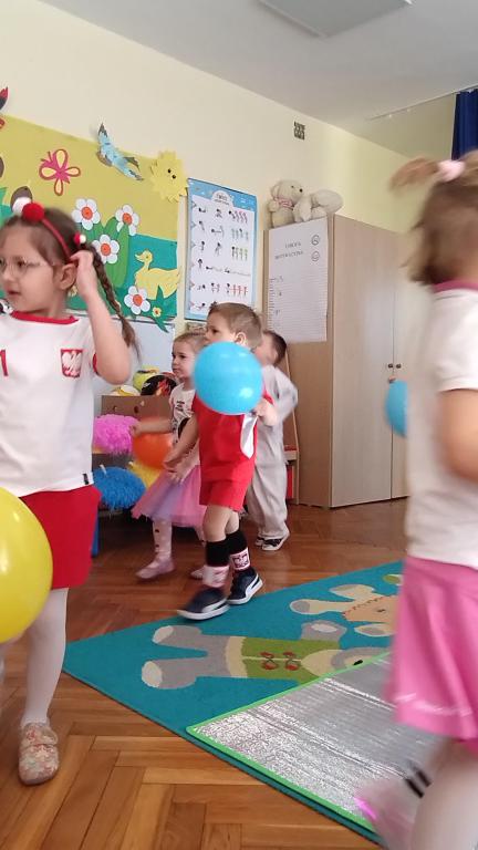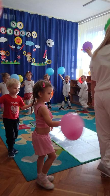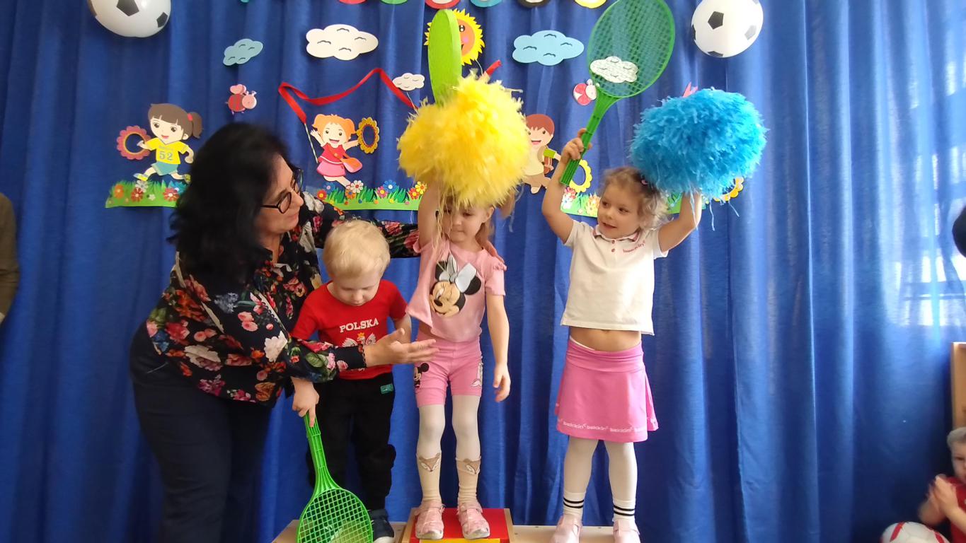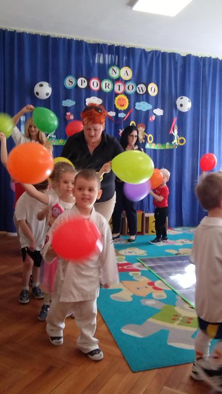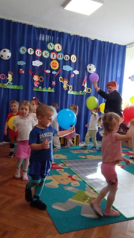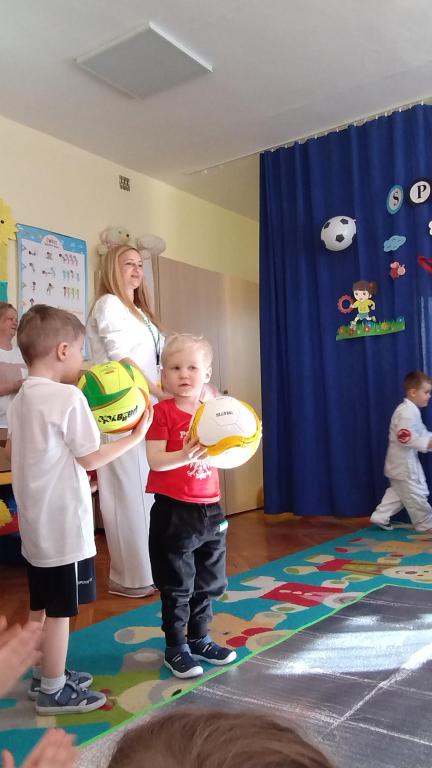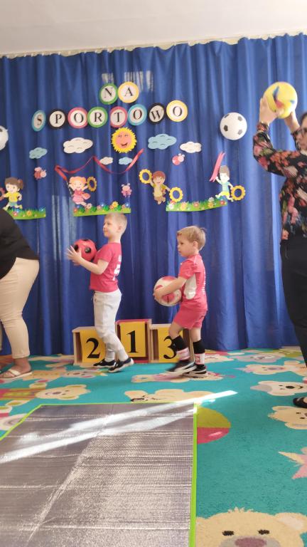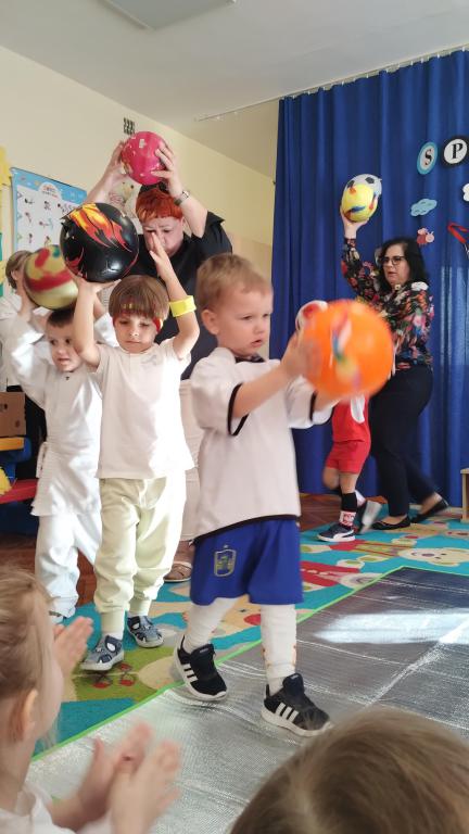 sobota, 22 marca 2025 roku Pokaz mody"Na sportowo" 2025 r. 3-latki 4-latki A Rozrywka Pierwszy Dzień Wiosny najmłodsze dzieci 3 i 4 latki uświetniły pokazem mody na sportowo. Dzieci pokazały się w pięknym tańcu ze wstążkami i piłkami. Wszystkie zaprezentowały stroje sportowe.