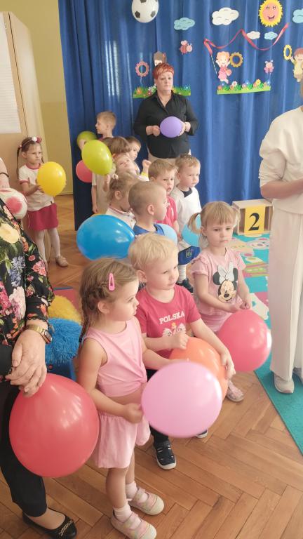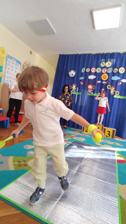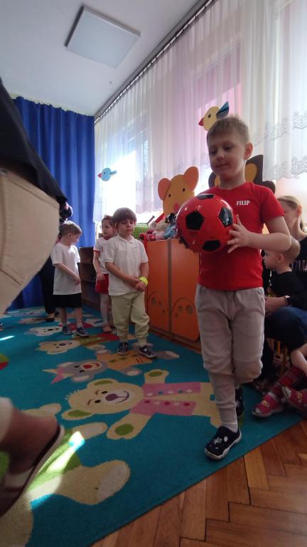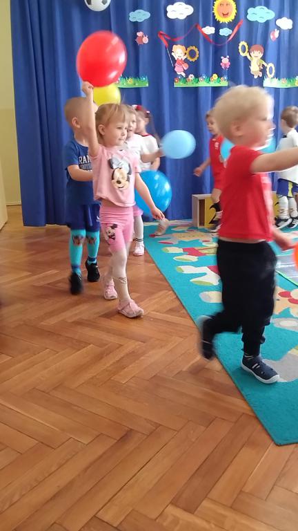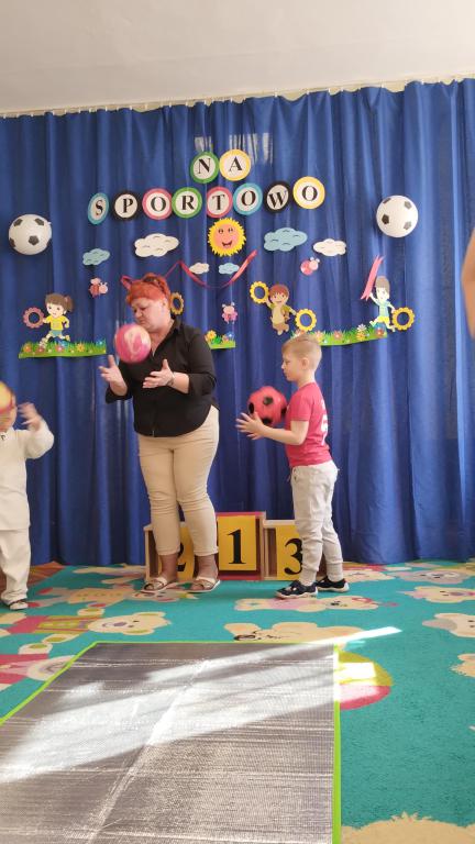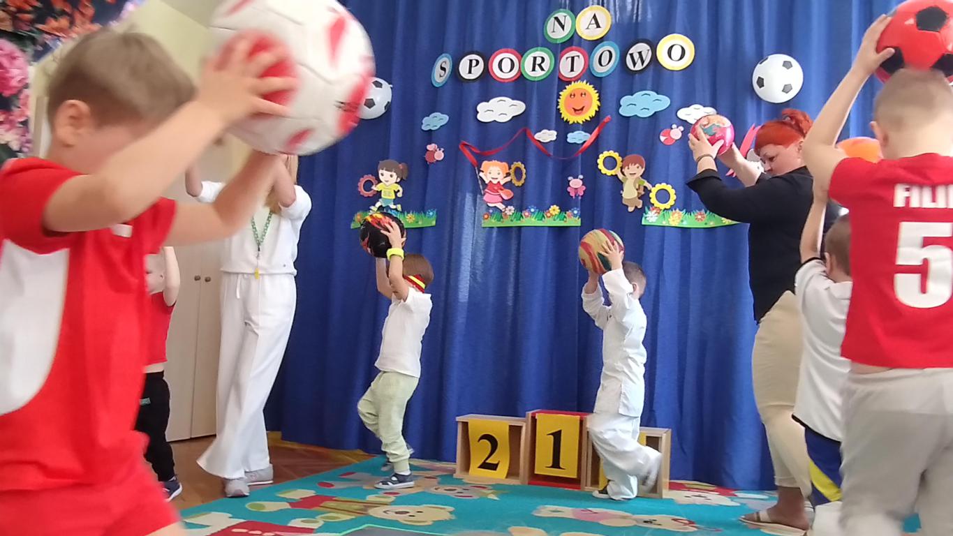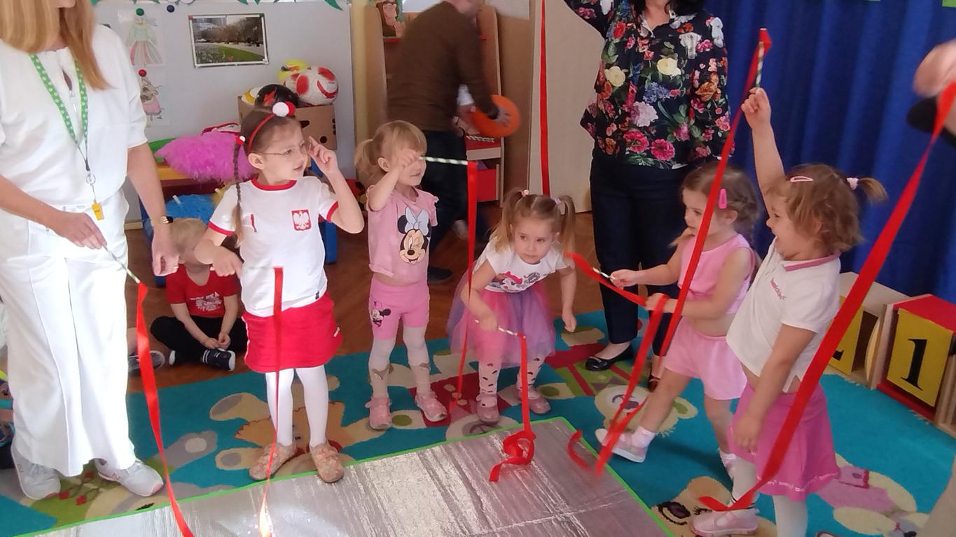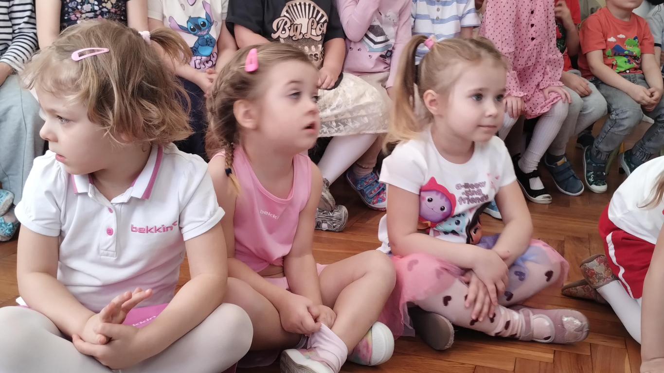 sobota, 22 marca 2025 roku Pokaz mody"Na sportowo" 2025 r. 3-latki 4-latki A Rozrywka Pierwszy Dzień Wiosny najmłodsze dzieci 3 i 4 latki uświetniły pokazem mody na sportowo. Dzieci pokazały się w pięknym tańcu ze wstążkami i piłkami. Wszystkie zaprezentowały stroje sportowe.