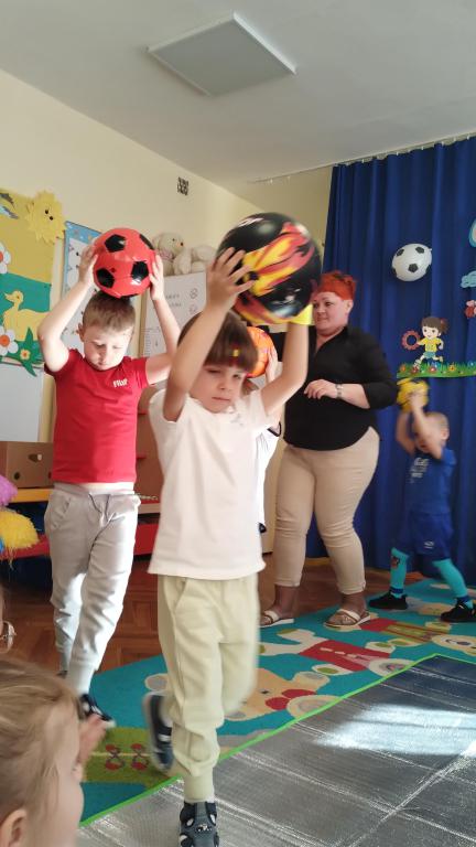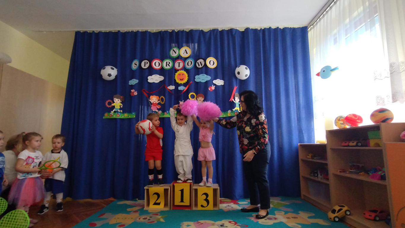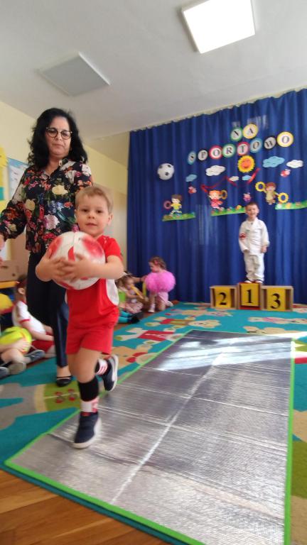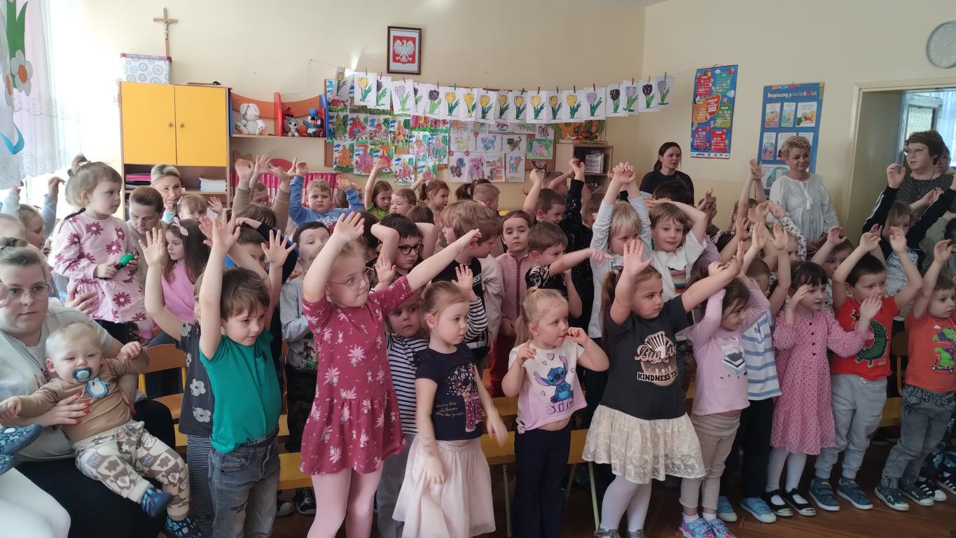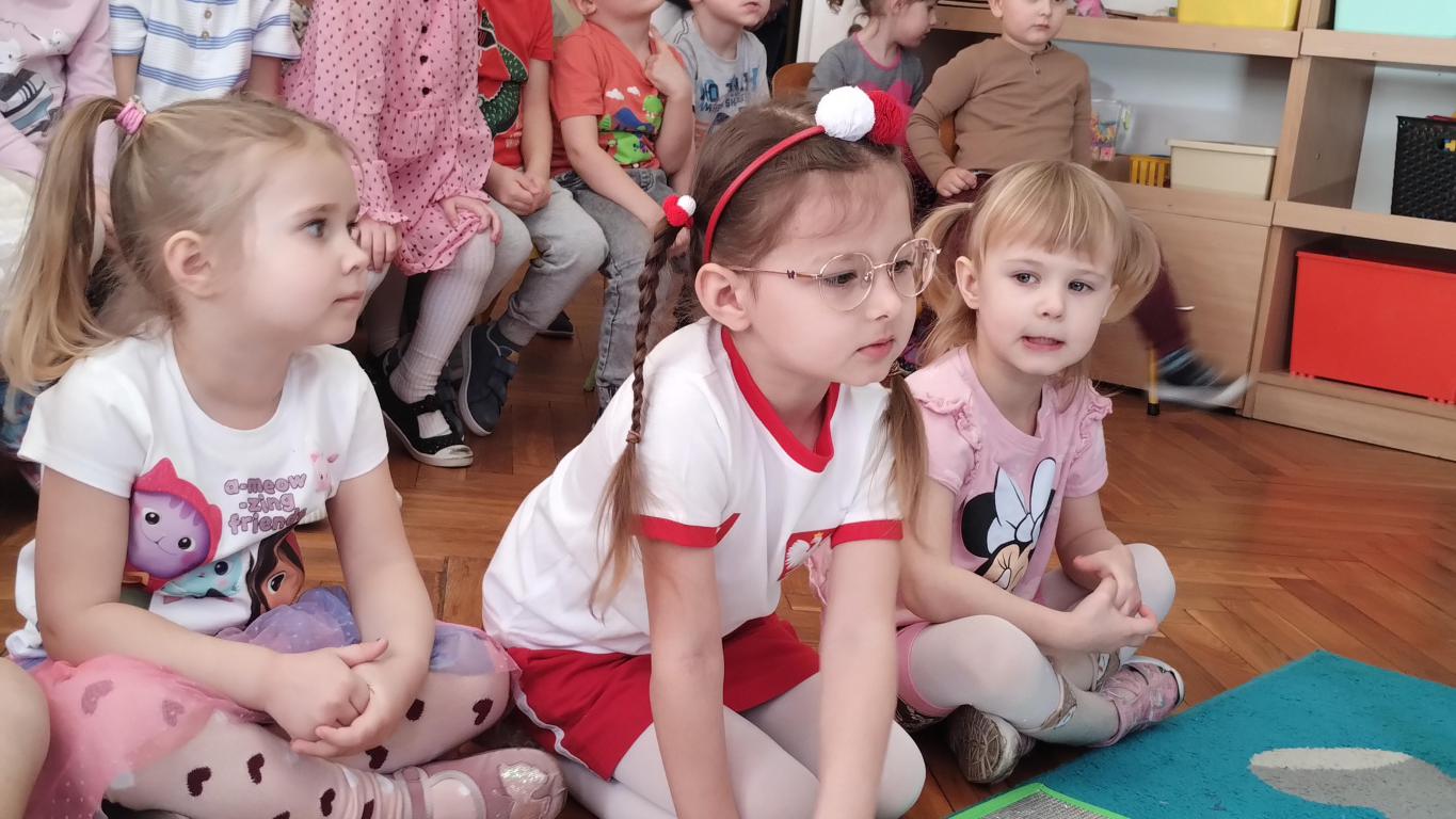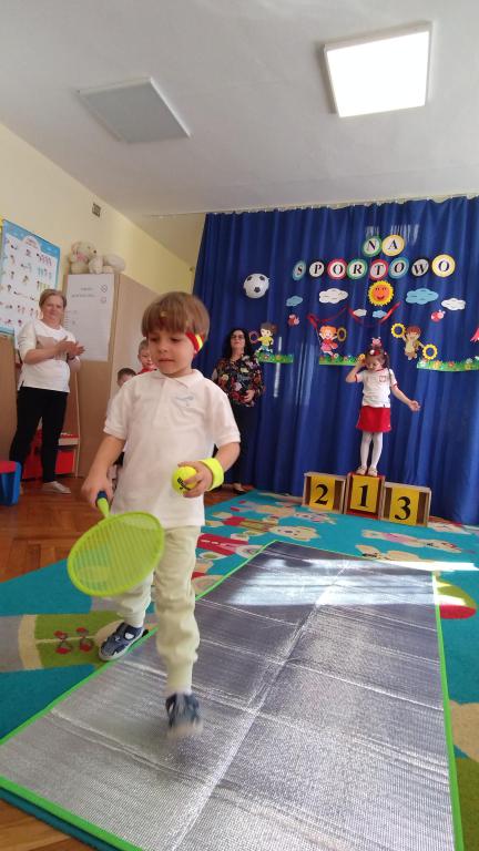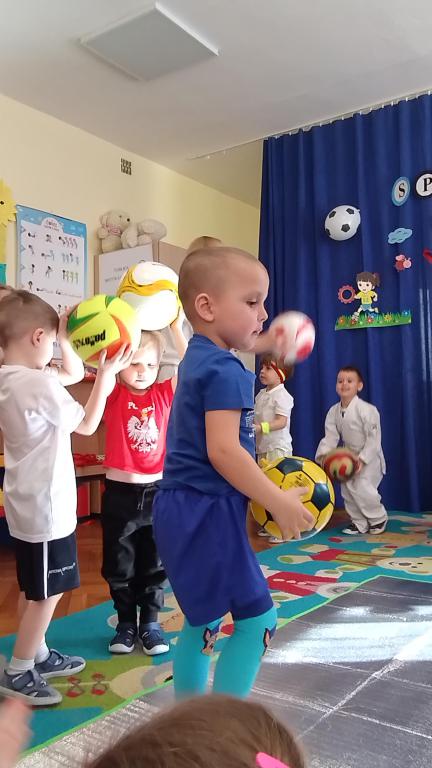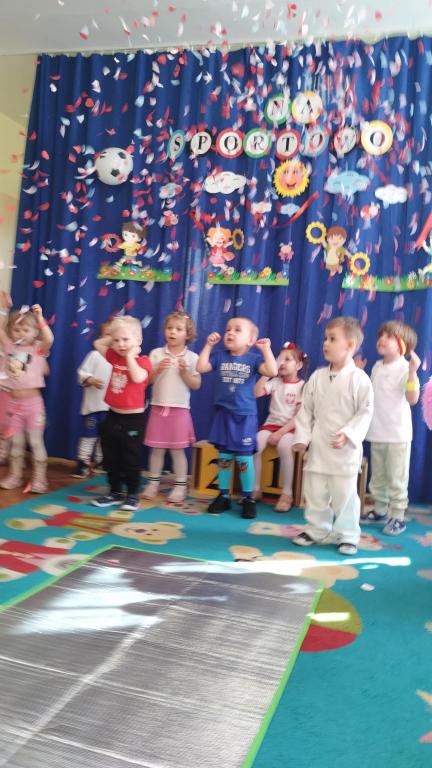 sobota, 22 marca 2025 roku Pokaz mody"Na sportowo" 2025 r. 3-latki 4-latki A Rozrywka Pierwszy Dzień Wiosny najmłodsze dzieci 3 i 4 latki uświetniły pokazem mody na sportowo. Dzieci pokazały się w pięknym tańcu ze wstążkami i piłkami. Wszystkie zaprezentowały stroje sportowe.