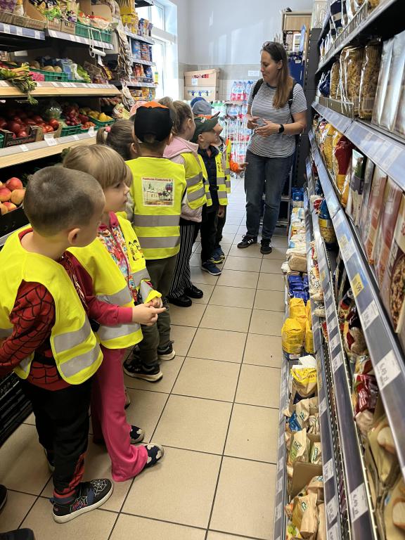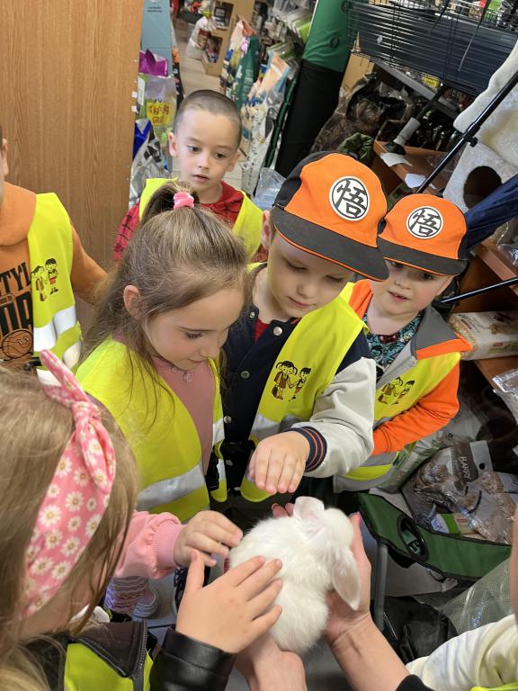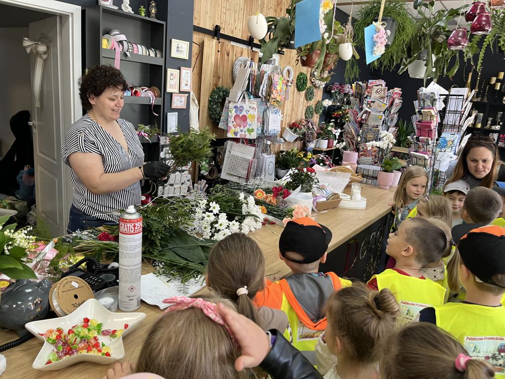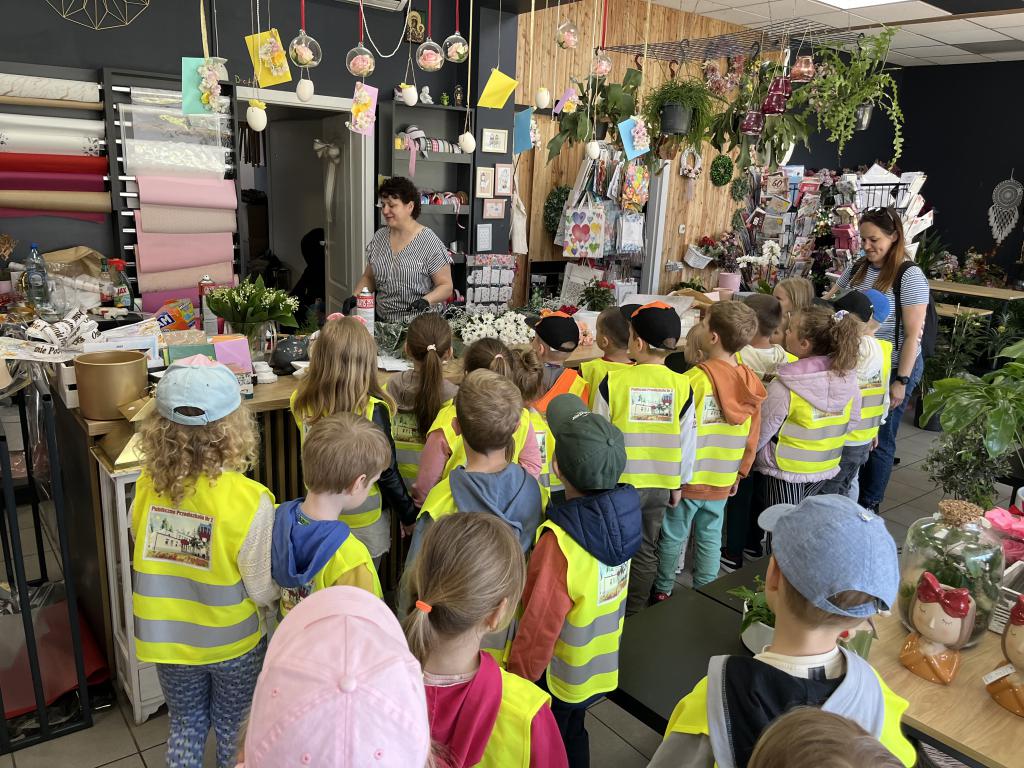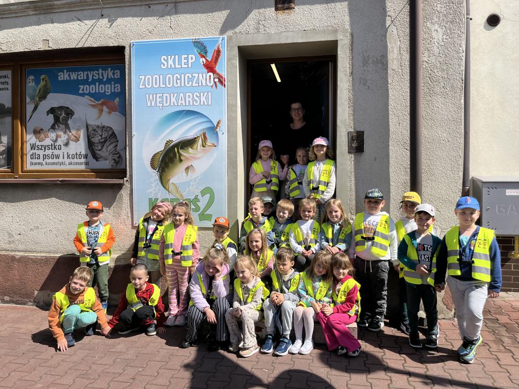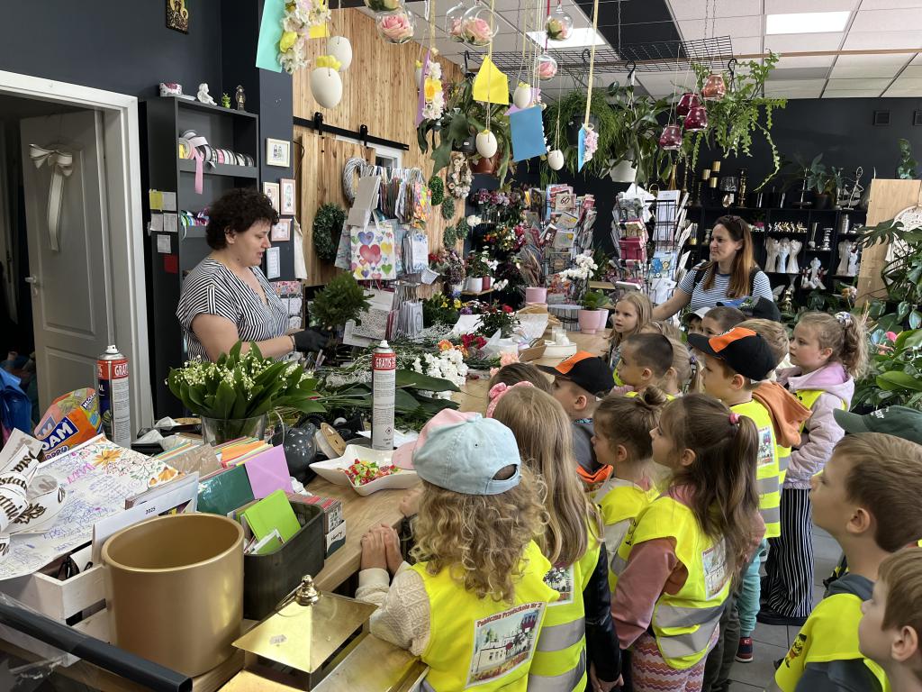 Grupa 5- latków wybrała się do pobliskiego sklepu spożywczego , zoologicznego oraz kwiaciarni. Dzieci zostały zapoznane z pracą sprzedawcy oraz florysty. Przedszkolaki miały okazje obserwować codzienną pracę oraz wyposażenie sklepów. Zwrócono uwagę na sposób robienia zakupów oraz użycie zwrotów grzecznościowych. Dzieci oglądały wszystkie półki oraz regały. Kolejnym punktem odwiedzin był sklep zoologiczny. Dzieci z zainteresowaniem obejrzały różne akcesoria niezbędne do hodowli zwierząt. Na koniec dzieci podziwiały rybki, królika oraz żółwia. Ostatnim etapem naszej wycieczki była kwiaciarnia. Przedszkolaki poznały techniki przygotowania bukietu z kwiatów, nazwy niektórych roślin oraz co można jeszcze kupić w kwiaciarni. Na zakończenie wizyt dzieci otrzymały słodkie podarunki.