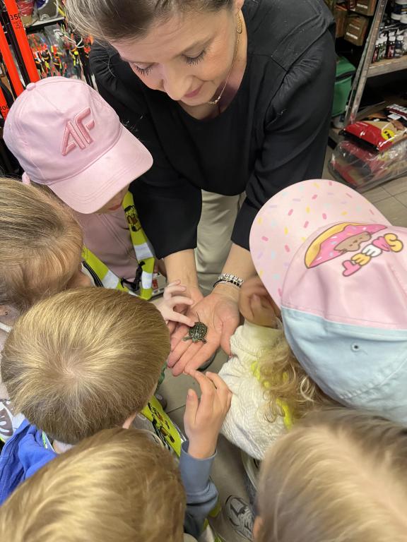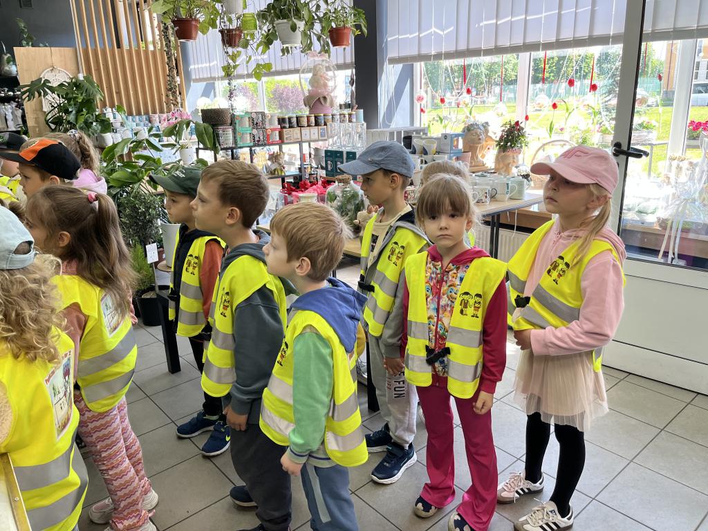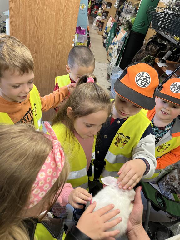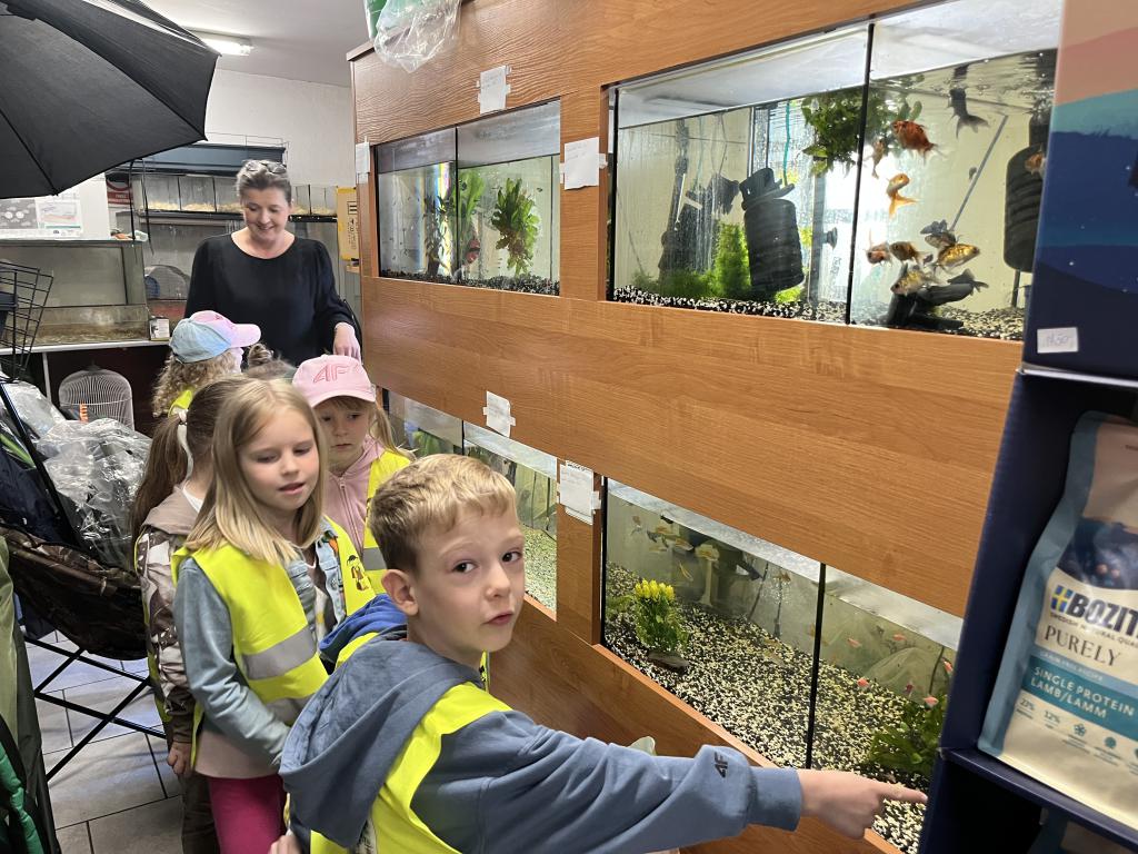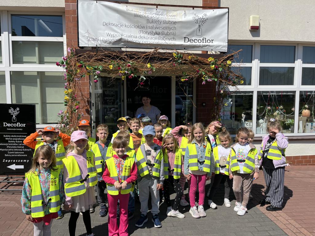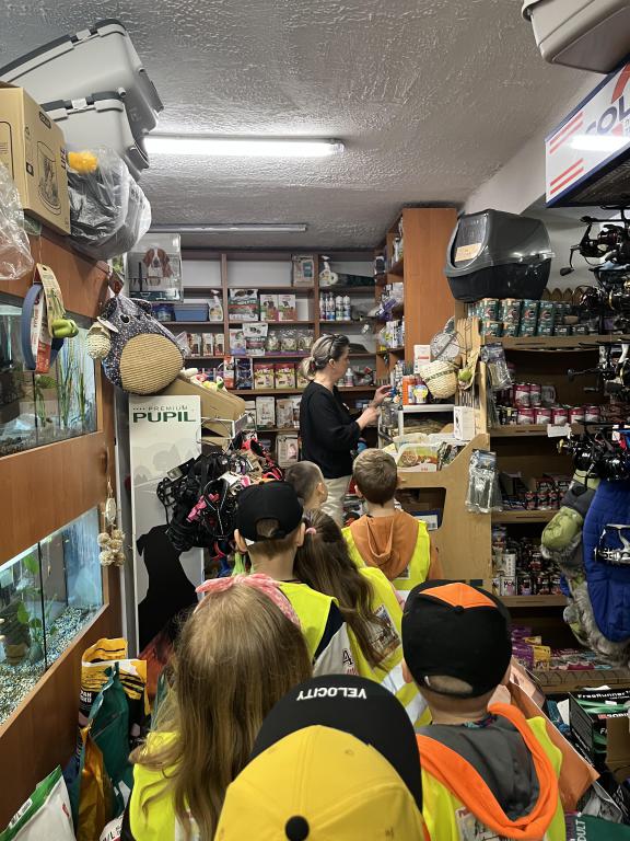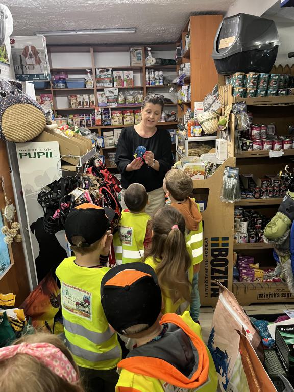 Grupa 5- latków wybrała się do pobliskiego sklepu spożywczego , zoologicznego oraz kwiaciarni. Dzieci zostały zapoznane z pracą sprzedawcy oraz florysty. Przedszkolaki miały okazje obserwować codzienną pracę oraz wyposażenie sklepów. Zwrócono uwagę na sposób robienia zakupów oraz użycie zwrotów grzecznościowych. Dzieci oglądały wszystkie półki oraz regały. Kolejnym punktem odwiedzin był sklep zoologiczny. Dzieci z zainteresowaniem obejrzały różne akcesoria niezbędne do hodowli zwierząt. Na koniec dzieci podziwiały rybki, królika oraz żółwia. Ostatnim etapem naszej wycieczki była kwiaciarnia. Przedszkolaki poznały techniki przygotowania bukietu z kwiatów, nazwy niektórych roślin oraz co można jeszcze kupić w kwiaciarni. Na zakończenie wizyt dzieci otrzymały słodkie podarunki.