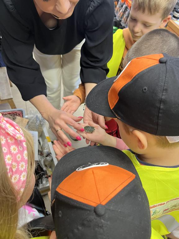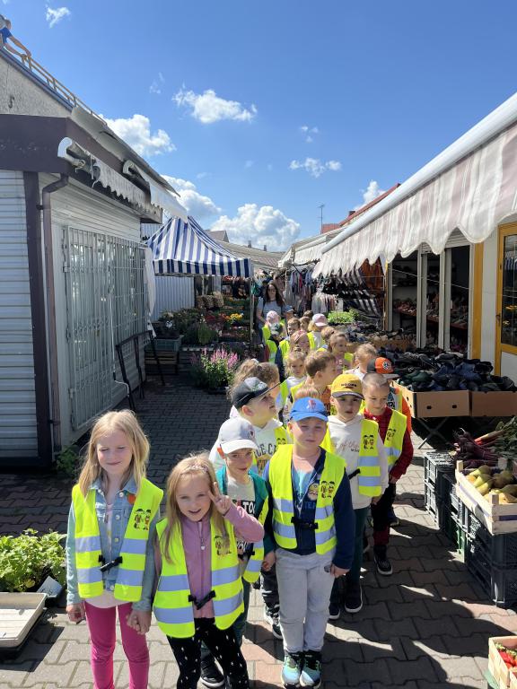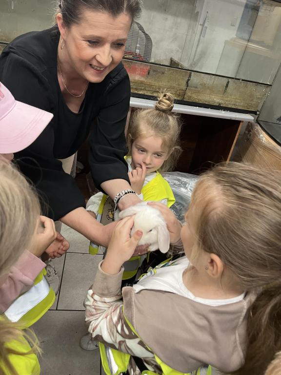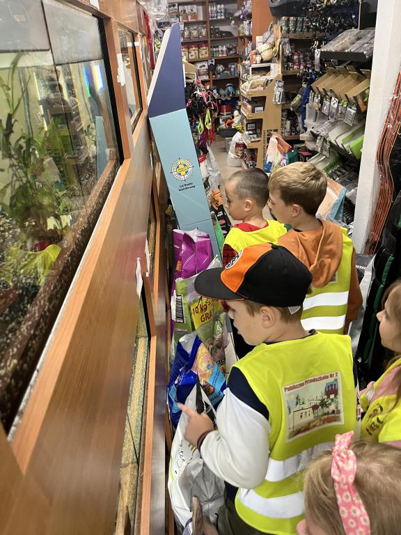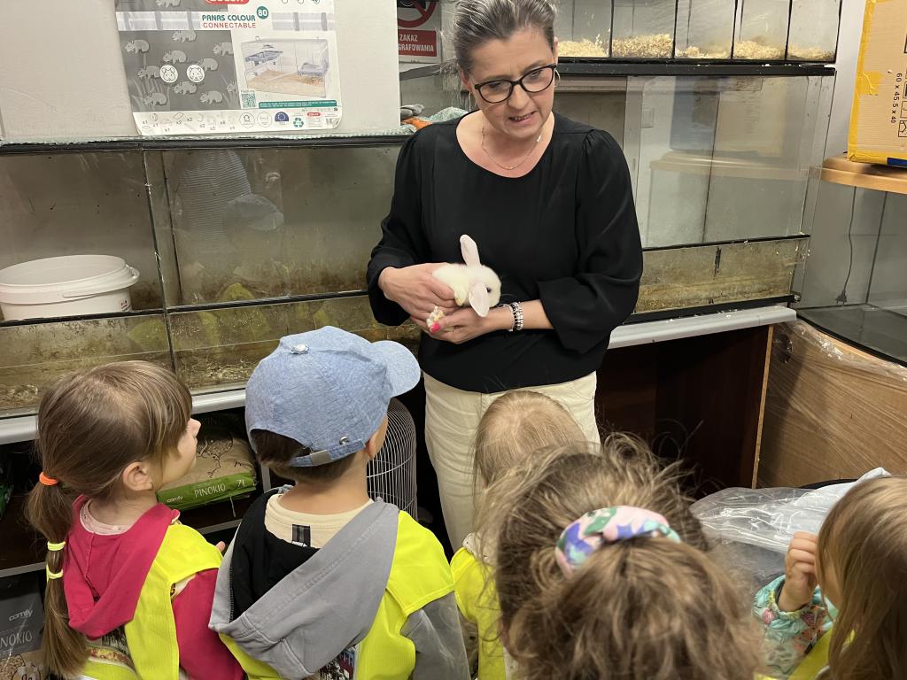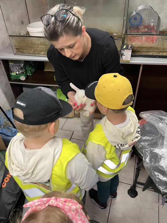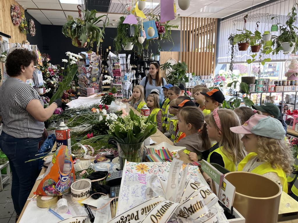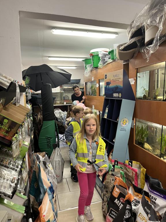 Grupa 5- latków wybrała się do pobliskiego sklepu spożywczego , zoologicznego oraz kwiaciarni. Dzieci zostały zapoznane z pracą sprzedawcy oraz florysty. Przedszkolaki miały okazje obserwować codzienną pracę oraz wyposażenie sklepów. Zwrócono uwagę na sposób robienia zakupów oraz użycie zwrotów grzecznościowych. Dzieci oglądały wszystkie półki oraz regały. Kolejnym punktem odwiedzin był sklep zoologiczny. Dzieci z zainteresowaniem obejrzały różne akcesoria niezbędne do hodowli zwierząt. Na koniec dzieci podziwiały rybki, królika oraz żółwia. Ostatnim etapem naszej wycieczki była kwiaciarnia. Przedszkolaki poznały techniki przygotowania bukietu z kwiatów, nazwy niektórych roślin oraz co można jeszcze kupić w kwiaciarni. Na zakończenie wizyt dzieci otrzymały słodkie podarunki.