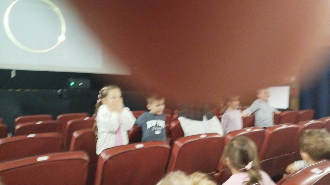 Dzieci z naszego przedszkola w październiku wybrały się do kina na bajkę pt. "Kicia Kocia mówi: Dzień dobry". Po seansie przedszkolaki rozmawiały o emocjach i tym, jak ważne są dobre maniery na co dzień. Za trafne odpowiedzi i aktywny udział w rozmowie otrzymały małe nagrody. Film bardzo się wszystkim podobał!