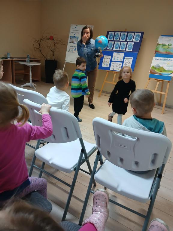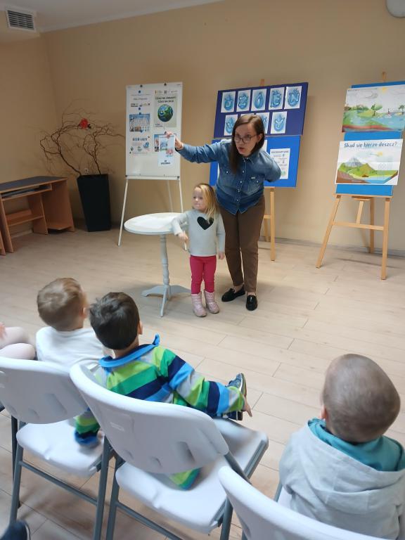 Dnia 25 marca 3-latki odwiedziły Bibliotekę Pedagogiczną. Tematem spotkania był Światowy Dzień Wody. Dzieci miały możliwość poznania znaczenia wody w życiu człowieka. Na spotkaniu dzieci dowiedziały się, że woda ma znaczenie w życiu człowieka, zwierząt i roślin oraz że ważne jest oszczędzanie wody.