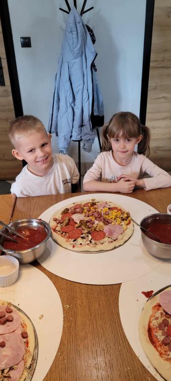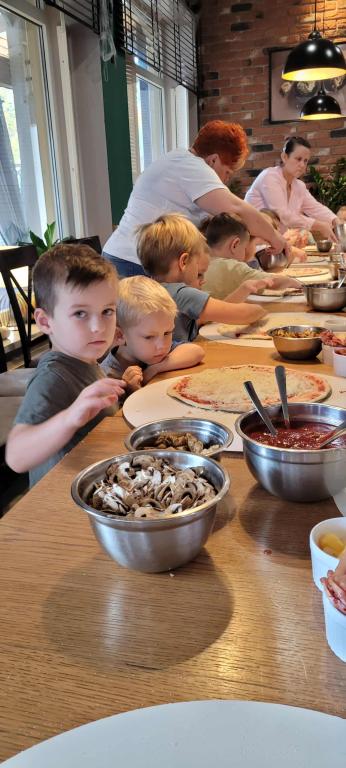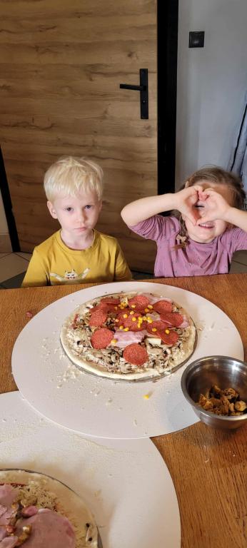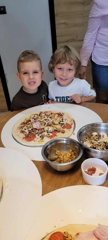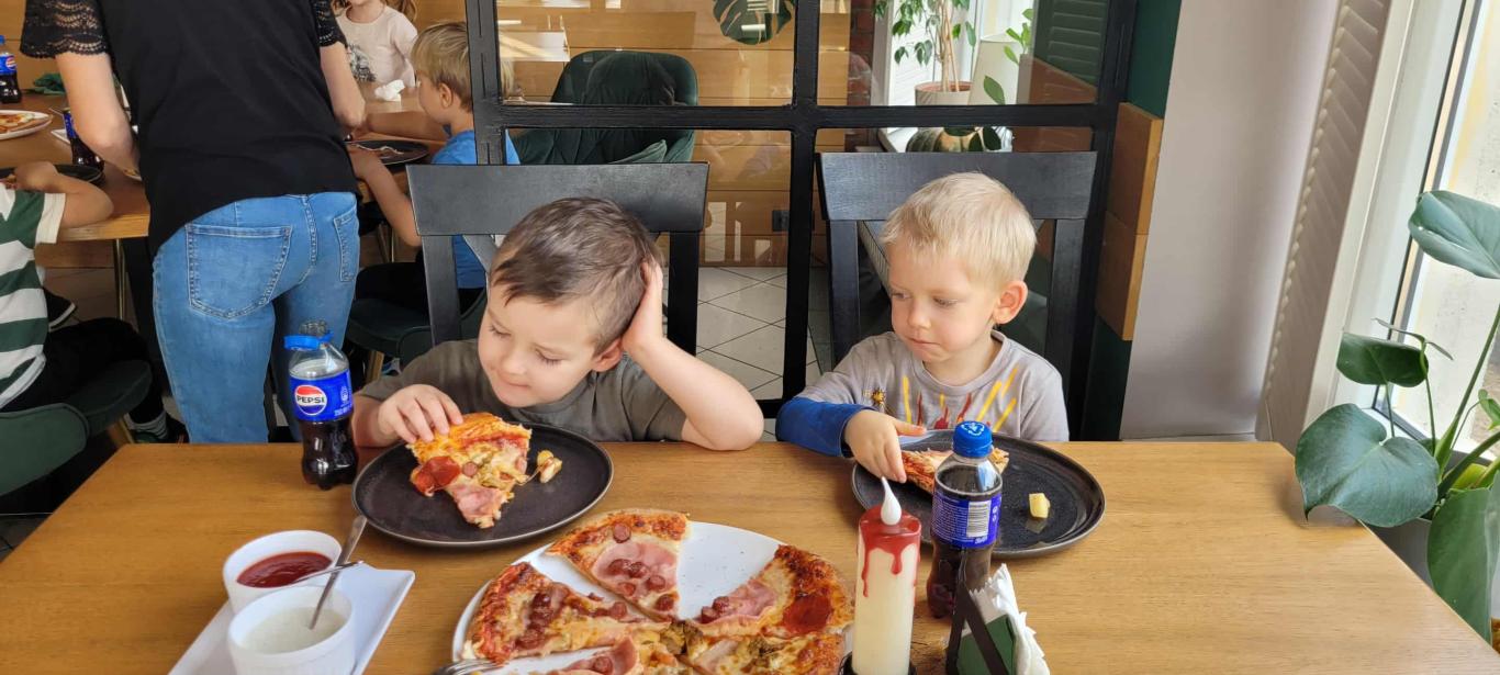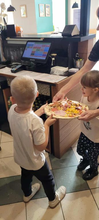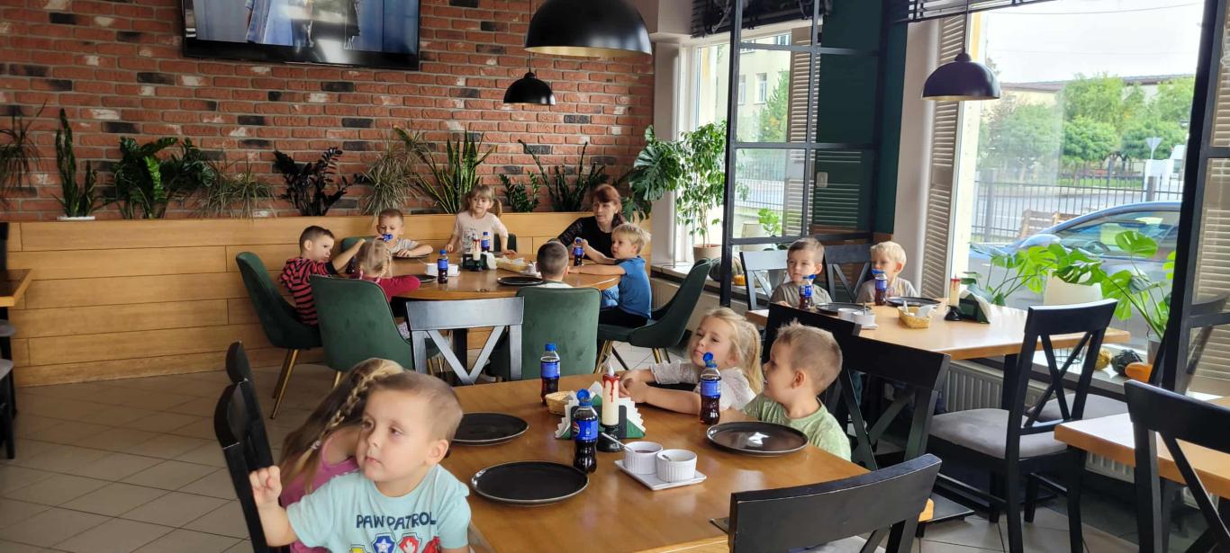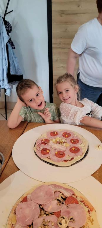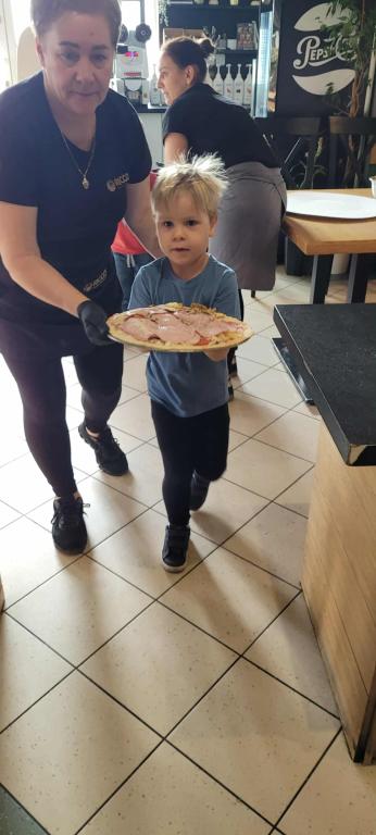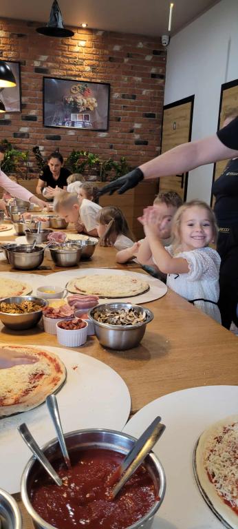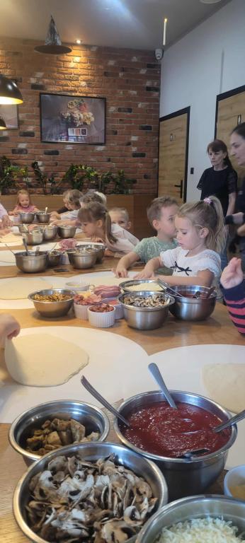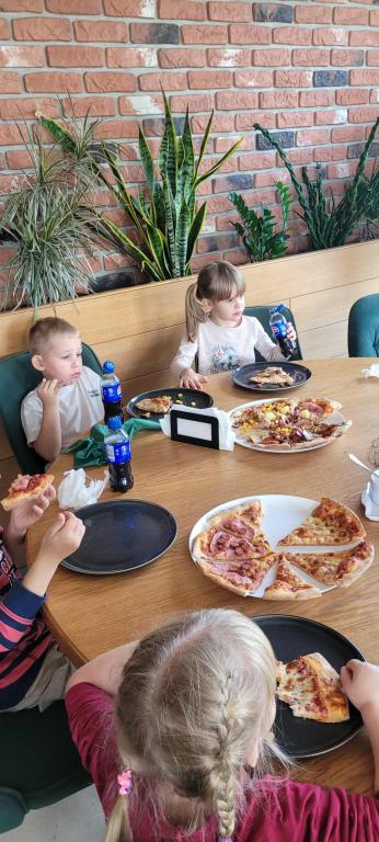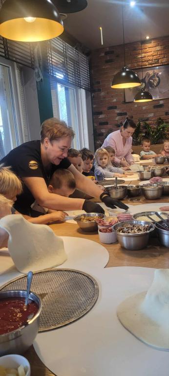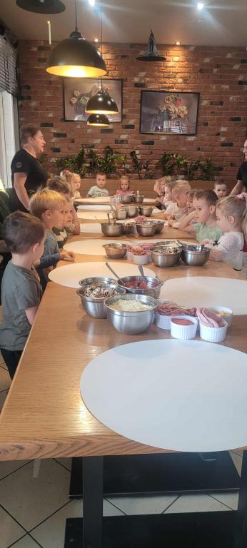 15.10.2025r., w jesienne przedpołudnie grupa 4-latków podjęła wyzwanie, aby przeżyć kulinarna przygodę. Celem wyprawy była pizzeria. Dzieci samodzielnie, ale pod okiem osób tam pracujących przygotowały pizzę. W czasie pracy na buziach dzieci malował się uśmiech, samodzielne dekorowanie ciasta różnymi dodatkami do dla nich ogromna frajda. Każda wykonana pizza była bardzo kolorowa i smaczna. Nagrodą za wykonaną pracę było skosztowanie pizzy oraz dyplomy "Małego Kucharza". Dzieci do przedszkola wróciły radosne i zadowolone.