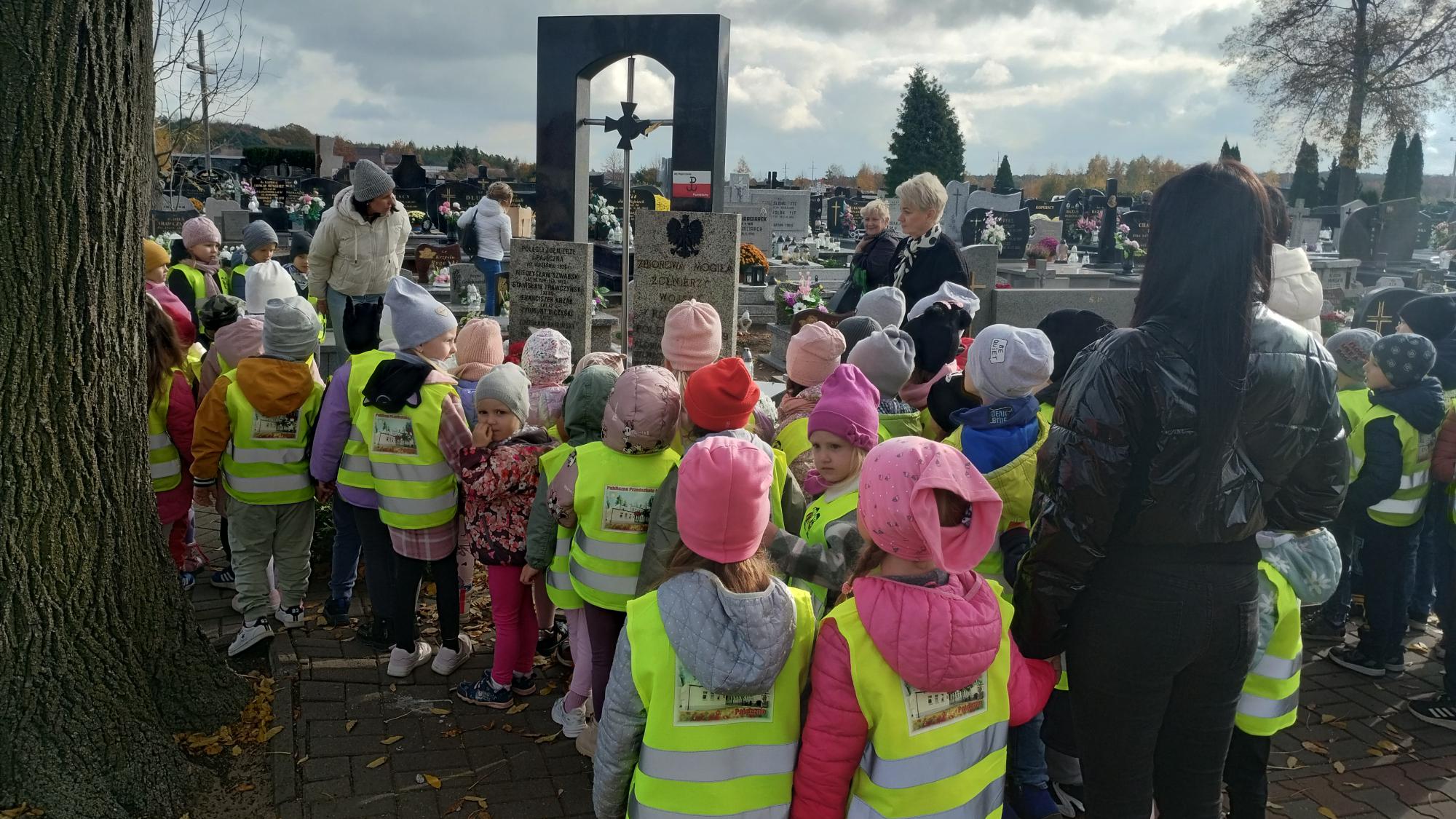 31 października 2024 roku tuż przed dniem Wszystkich Świętych przedszkolaki wraz z wychowawczyniami wybrały się pod pomnik Jana Pawła II oraz na cmentarz pod grób Nieznanego Żołnierza, aby zapalić znicze. W ten sposób chcieliśmy oddać hołd Papieżowi oraz Żołnierzom, którzy zginęli w obronie Ojczyzny. Po powrocie do przedszkola dzieci obejrzały film edukacyjny o tematyce zbliżającego się święta.