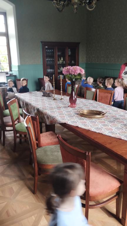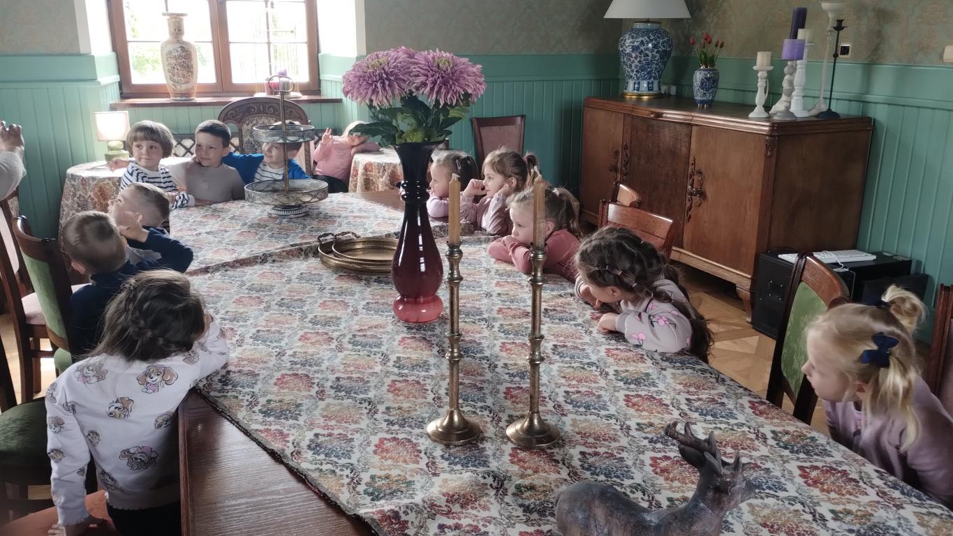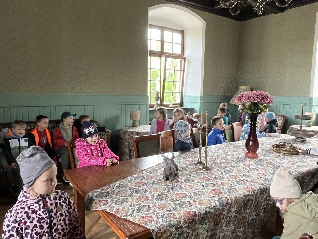 6 maja nasze przedszkolaki wzięły udział w wyjątkowej wycieczce autokarowej do Działoszyna, gdzie odwiedziły zabytkowy Pałac Męcińskich. Podczas wizyty dzieci miały okazję poznać ciekawą historię pałacu, a także wziąć udział w kolorowych warsztatach balonowych, które dostarczyły im mnóstwo radości. Nie zabrakło również pysznego poczęstunku, który był miłym zakończeniem pełnego wrażeń dnia.