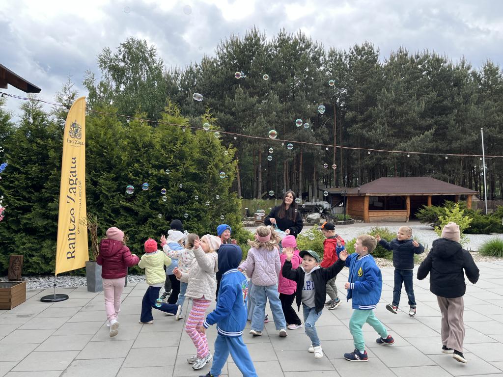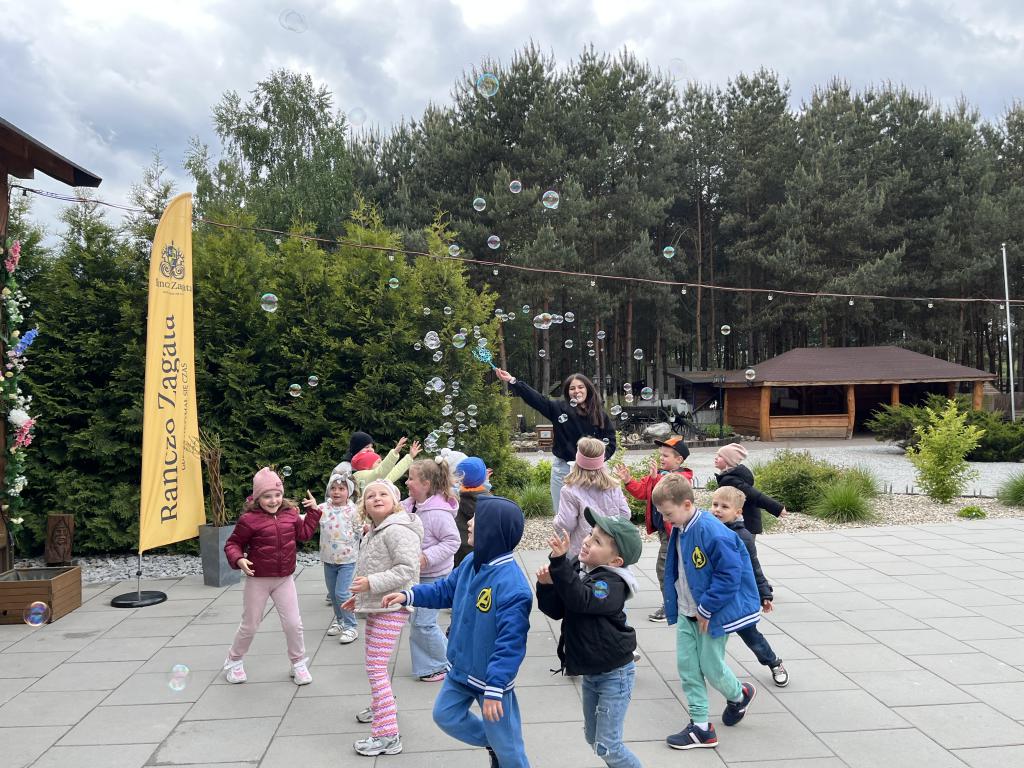 15 maja grupa 5- latków pojechała na wycieczkę wraz z rodzicami do Ranczo Zagata. Dzieci świetnie bawiły się na ogromnym terenie wykorzystując dostępne tam atrakcje. Wszyscy uczestnicy zwiedzali mini zoo, doili krowę, jeździli ciuchcią, zjeżdżali na dmuchańcach. Dzieci zorganizowały występ artystyczny z okazji Dnia Rodziny, który przypadał na ten dzień. Bardzo dziękujemy wszystkim za obecność, dobry humor i masę uśmiechu 😊
